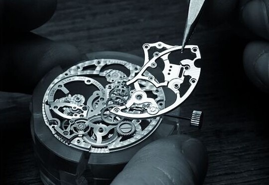 此外,超薄表对于制表师的装配技术也提出了更高的要求,因为所有的螺丝和齿轮的上下轴都变短了,制表师即便只是用镊子夹起一个零件都会变得比以前更困难,何况还要将它准确地固定,在组装过程中一个小小的失误,就可能将夹板刮伤,或者造成零件的损坏。此外,夹板也会因为厚度的降低而更容易变形,必须要确保所有的螺丝固定在相同的水平面上,如果有高有低,悲剧就发生了。因此,超薄表虽然不算复杂功能,但它在内行人眼中却拥有不逊于复杂机构表的地位。