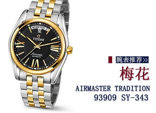 对细节的关注、出色的工艺、原厂生产流程的严格控制和传统的制表技术是梅花表的主要特色。除了秉承数十载的优秀品质,梅花表也同时兼顾时尚潮流的发展方向。融合经典与现代于一体的AIRMASTER TRADITION系列,经过缎面和抛光处理的 5 链环钢质表带,使其成为瞩目的焦点。
