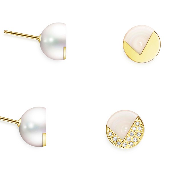 设计师 Melanie 从贝壳孕育珍珠的模样中汲取灵感,加入更多空间的想象,而创作了CUBIC PEARL 系列。将净白圆润的珍珠切割出圆洞,再以18K黄金薄片镶嵌,并于圆心中镶上同样以18K黄金打造的迷你圆球体及立方体,其迷你圆球体以闪烁星光的钻石点缀,如同诉说珍珠成长的奥秘——正是借由母贝的长久孕育和庇护而诞生的自然界神秘结晶。钻石18K黄金圆球体及立方体经手摆动可自然摇晃,增添视觉上的创意效果。同样,在配戴时也能拥有难以置信的感官享受以及无穷的趣味。