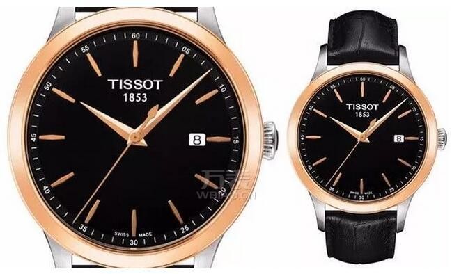 天梭的这款石英表以不锈钢的材质打造,并且外观上还镀有一层玫瑰金的色彩,使腕表展现出了一种华贵的气质。黑色表盘上3点钟方向还有一个日期显示的小表盘,使得腕表整体的美丽更上一层楼,相信精英男士们是不会错过这款如此精致的手表。