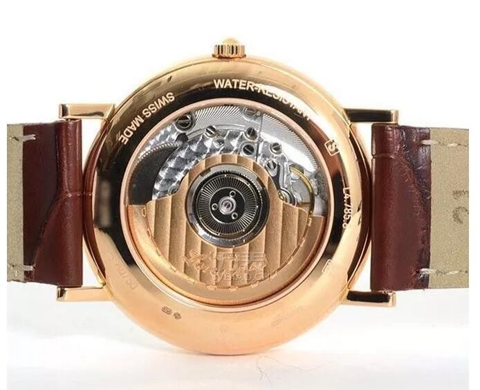 与其他款式表盘刻有飞翼沙漏的LOGO不同,表盘飘逸的longines字样,以及独特的刻度数字及复古指针,使该表展现出特有的古典优雅韵味。18K玫瑰金外壳及鳄鱼皮表带,更彰显出浪琴经典的稳重与珍贵。穿上一身西装再搭配这一款表,一股成熟男人气息自然而然就迎面扑来。