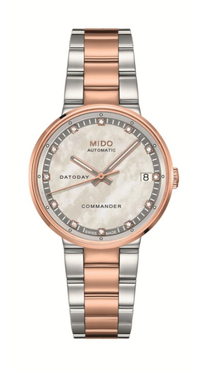 埃菲尔铁塔虽采撷铮铮铁骨却依旧有柔情的一面。指挥官系列女士钻石腕表在传承俊逸外形的同时融入柔美的设计元素。33mm的表盘采用珍珠贝母材质,每一款腕表都闪耀着独一无二的光芒,正如每一份爱情都无可替代。玫瑰金表盘镶衬12颗天然钻石,相映成辉,金粉光芒由腕间尽情释放,妆点了女性高贵典雅的一面。钻石切割的指针游走于流光溢彩的表盘上,经白色Super LumiNova®夜光处理,确保夜间读数清晰。316L不锈钢镀PVD玫瑰金的间金表带赋予女性刚强之感,打造女性华丽而不俗的气质,令人倾心神往。两款腕表如同两个坚强独立的个体,在玫瑰金的光芒中,共同沐浴着爱情。